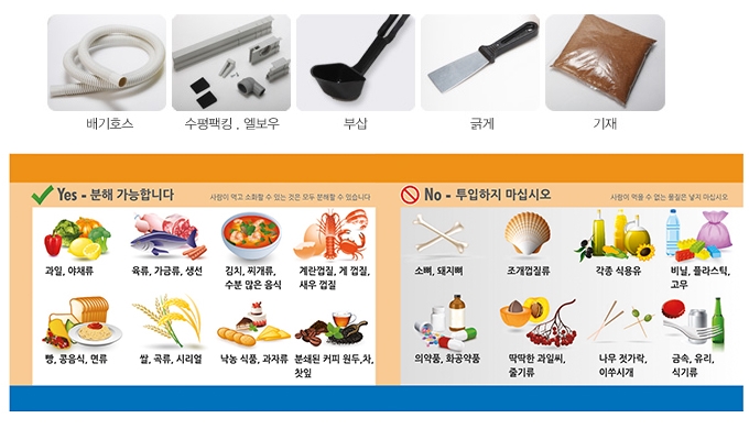 • 음식물은 완전히 소멸되고 남은 5%의 잔존물은 양질의 퇴비로 사용 가능합니다.