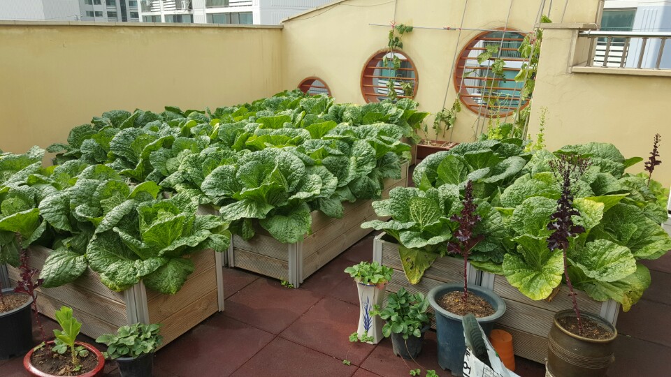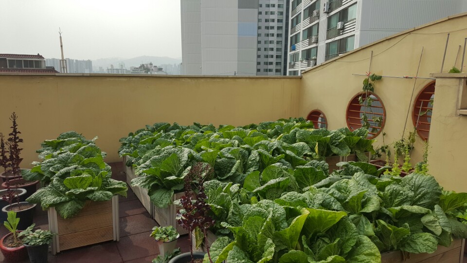 배추와 여러 채소들이 무럭무럭 자라고 있습니다.