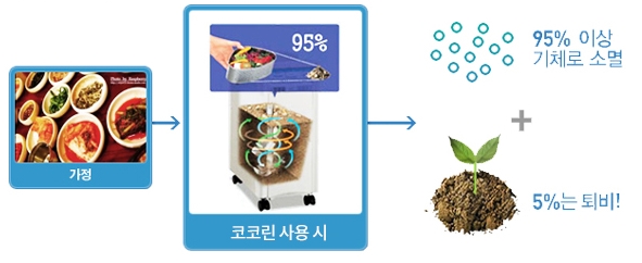 • 음식물은 완전히 소멸되고 남은 5%의 잔존물은 양질의 퇴비로 사용 가능합니다.